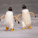 Two Gentoo penguins at Bluff Cove on Falklands walking to ocean Steve Heap Puzzle