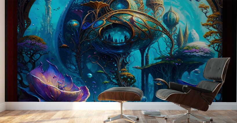 Get this artwork "The Underwater Mystical Realm Of The Bilibis Enchanting AI Concept Art by Xzendor7" in a framed print.