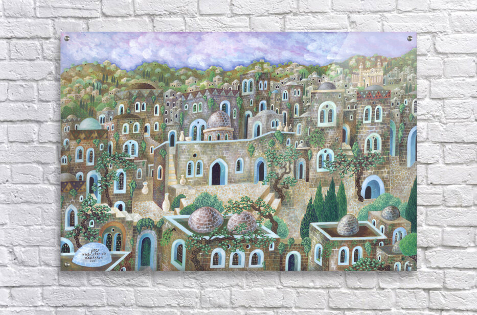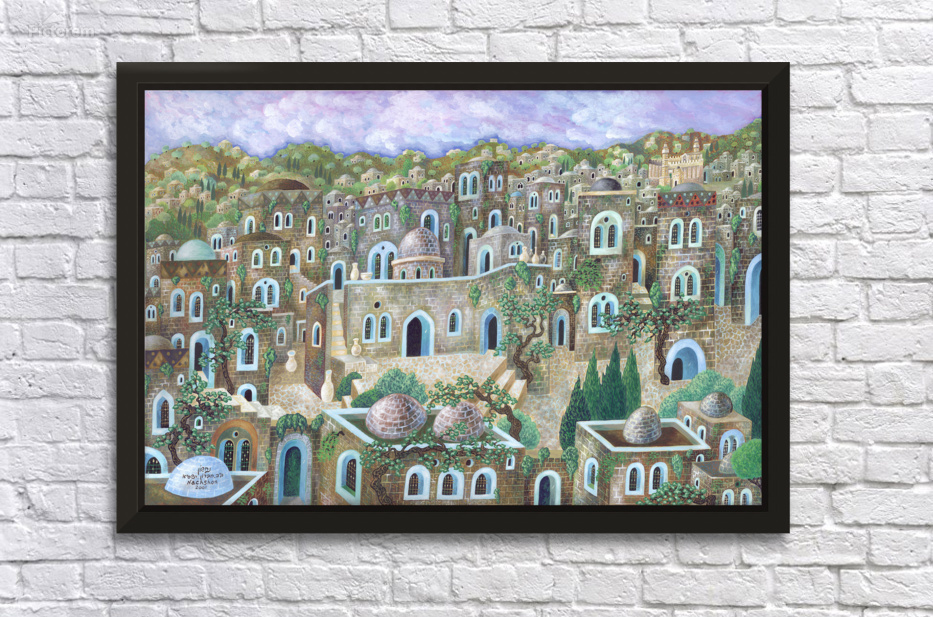 My use of symbolism has developed over time. I slowly came to appreciate that I was making repeated use of symbolic elements as a poet plays with new turns of phrase. One can find in my work frequent groupings of seven or eighteen (numerologically representative of life (or chai) in Hebrew) and twenty-six (corresponding to an important Divine Name). Drops of dew are conspicuous, as are tongues of flame, the Holy Temple, the City of Jerusalem, winged candles, tefillin and tzitzit. Also angels’ wings, ladders, musical instruments and – broadly speaking- connections between heaven and earth. Baruch Nachshon