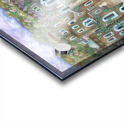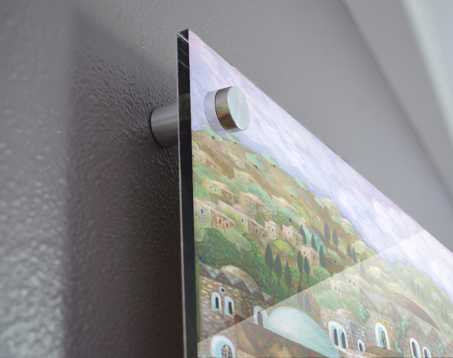 Printed to the edge - Ready to hang - provided with 4 premium polished aluminum stand off ( wall screws and mounting hardware provided )