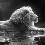 Get this artwork "Majestic repose a lion in monochrome reflection" in a framed print.