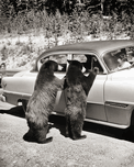 ABOUT THIS ARTWORK: 1950S TWO BLACK BEARS STANDING AT WINDOWS OF CAR 229783