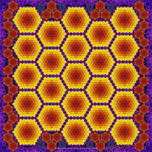 1/9/24 A repeat variation of "Not A Granny Square". Concentric circular patterns, in bright gradating colors, form an abstract modular pattern, set ag...[+]