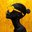 Eclipse Glasses - Lunar Sols. A side profile of a person with dark skin is depicted against a vibrant yellow background, accented with contrasting bla...[+]