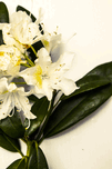 Exotic Asia style floral image on a bunch of white blooms branched out on tranquil white background. Japanese flower art