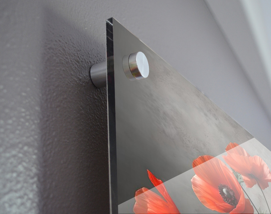 Printed to the edge - Ready to hang - provided with 4 premium polished aluminum stand off ( wall screws and mounting hardware provided )