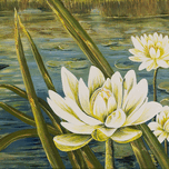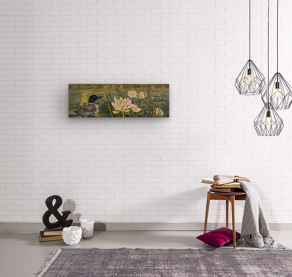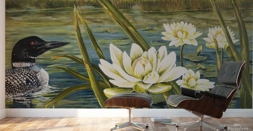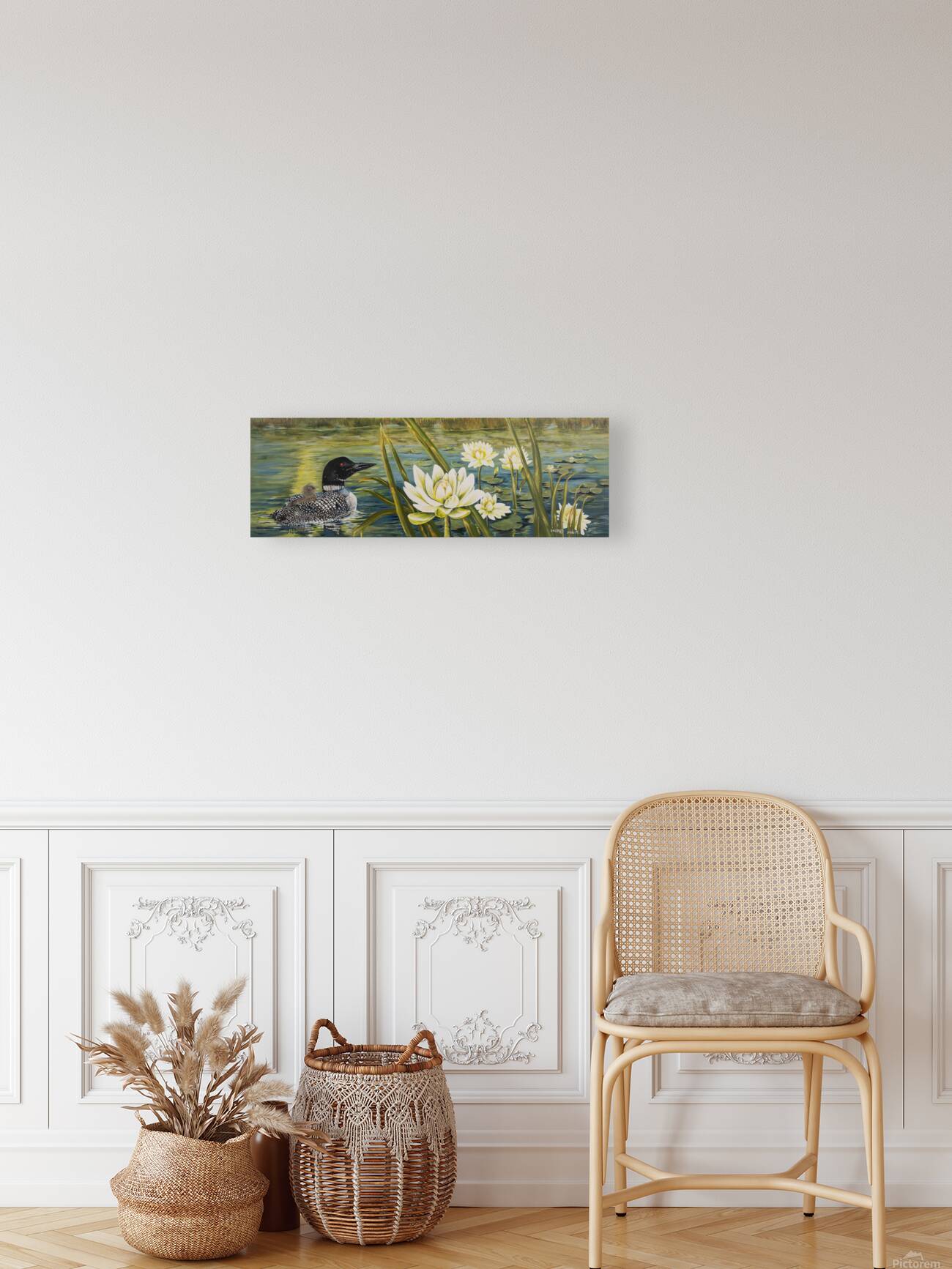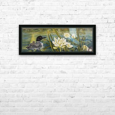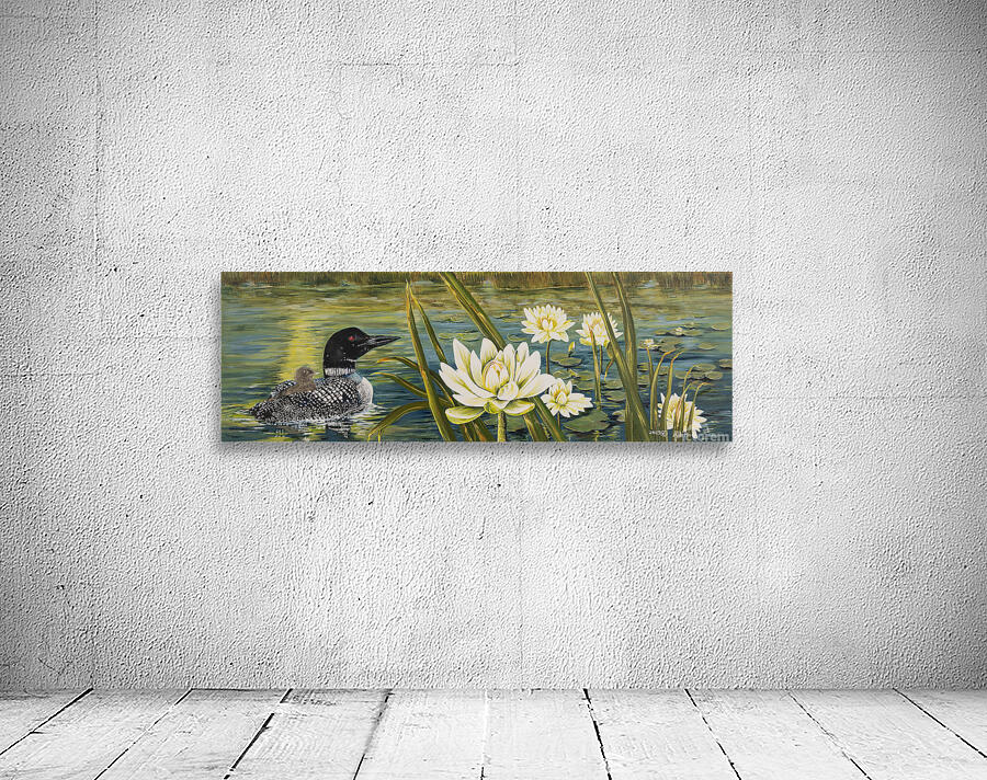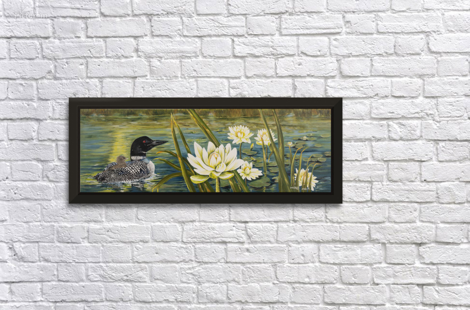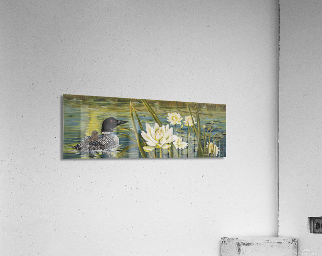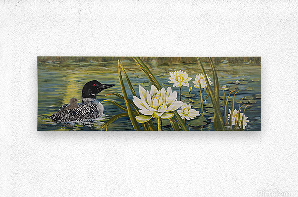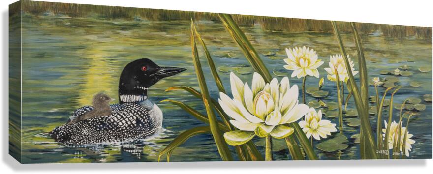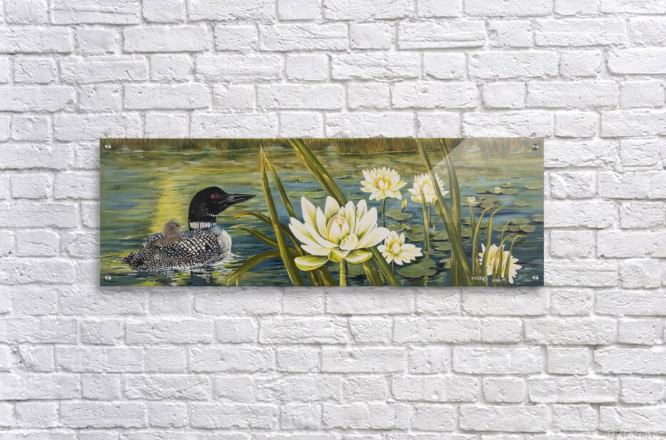 This acrylic painting was created in 2023 by artist Dale Morrish. This piece depicts the peaceful and tranquil life of the Canadian loon.