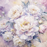 A delicate and ethereal watercolor painting showcasing blooming white flowers surrounded by soft hues of blue and pink evoking a sense of serene beaut...[+]