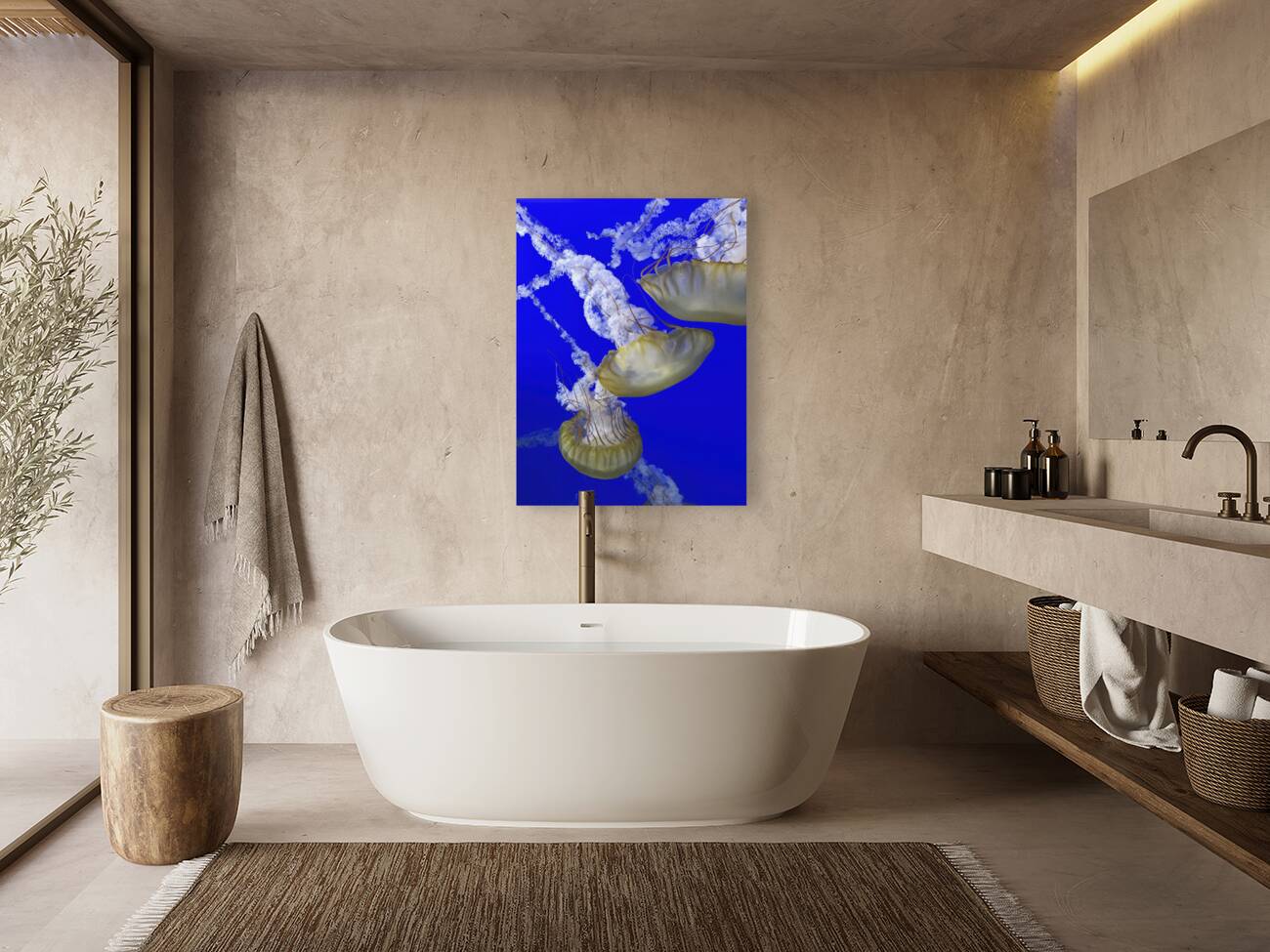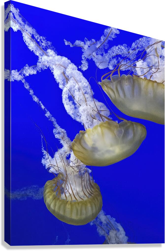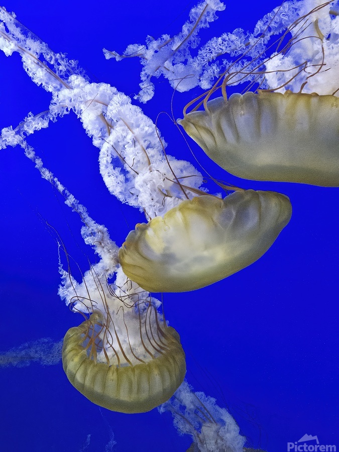 Pacific sea nettles, a species of stinging jellyfish, float about peacefully without any cares. Produced specifically by DeepEarth Photography for use in the hospitality industry. No warranties are stated or implied. Credits: DeepEarth Photography