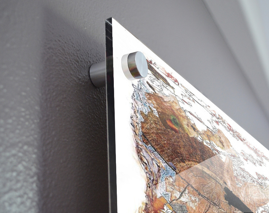 Printed to the edge - Ready to hang - provided with 4 premium polished aluminum stand off ( wall screws and mounting hardware provided )