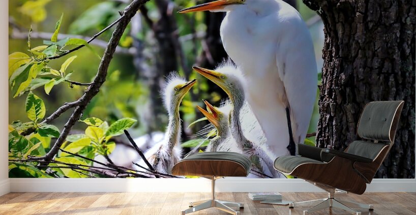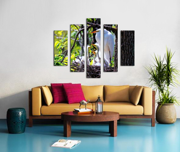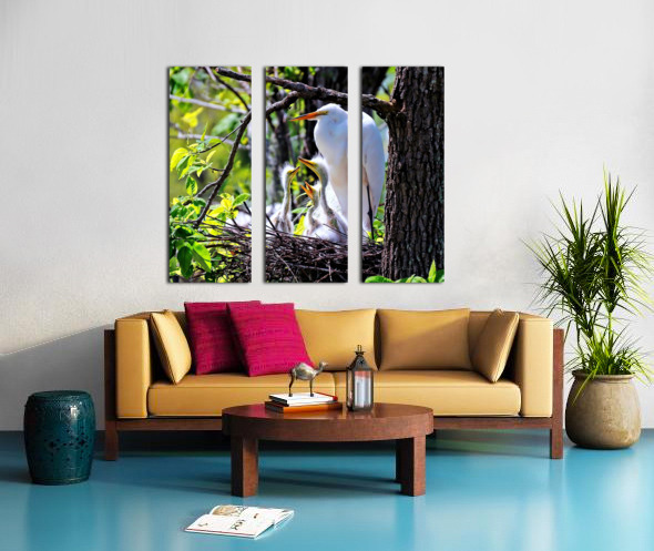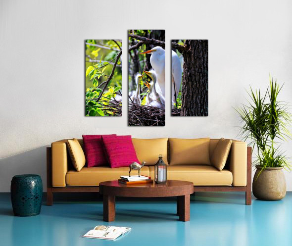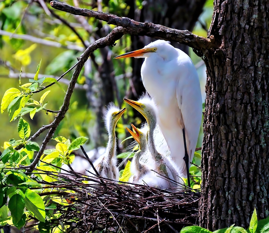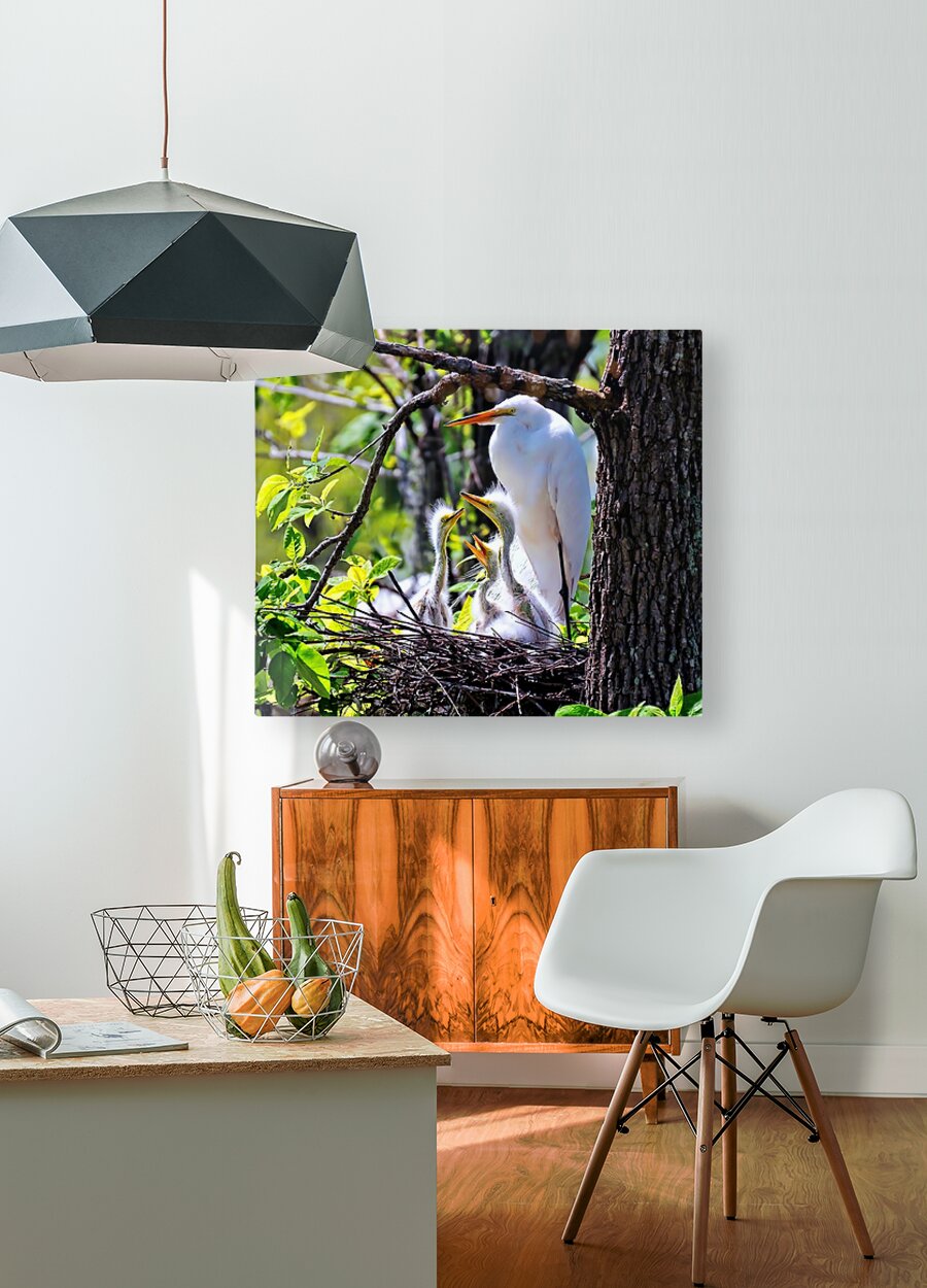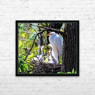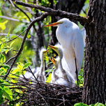 GREAT EGRET ON NEST WITH EGRET CHICKS. 3 EXPOSURE HDR