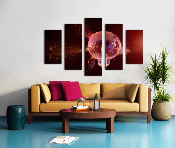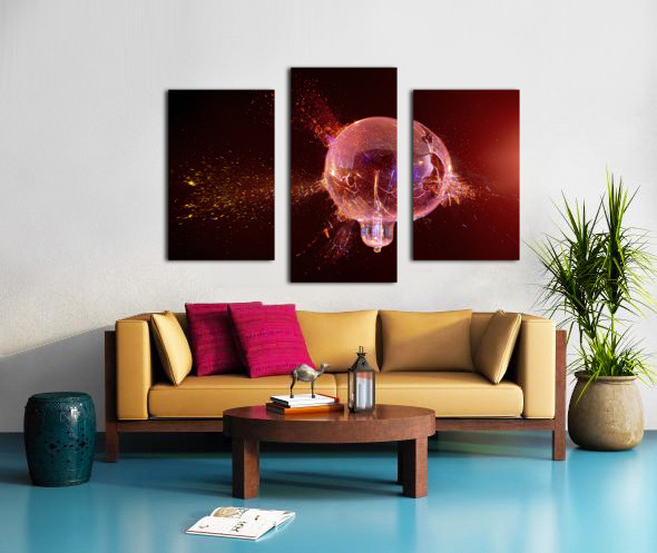 explosion of a glass bulb on a black background.  Canvas print