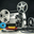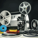 old 8mm film projector with several reels
