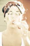 Cautious Attractive Young Woman Wearing Bandana Blowing A Huge Soap Bubble With A Look Of Anxiety In A Finance And Monetary Concept Titled Inflation And Bust