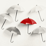 Contemporary pop art on a collection of umbrellas with selective colour difference. Parasol pop