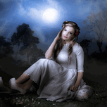 Photo Of A Beautiful Woman Sitting In A Mysterious Night Forest With Fog In A Fine Art Photo Titled Vintage Beauty In Nature