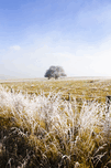 Vibrant artwork of a fog covered field with nature surroundings draped in magical icicles. Fairytale winter in Fingal