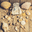 Nautical fine art background with a vacation seat amongst an abstract of ocean sea shells. Miniature sea escape