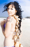 Happy Adventure Woman In Bikini Living The Summertime Lifestyle When Collecting Sun Sea Shells On A Summery Beach Shoreline In A Fun At Summer Play Co...[+]