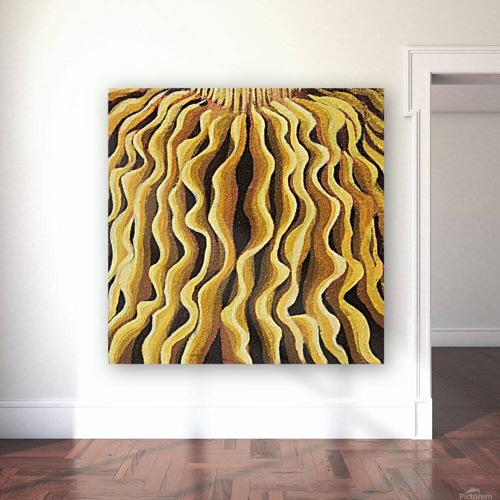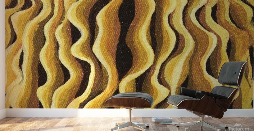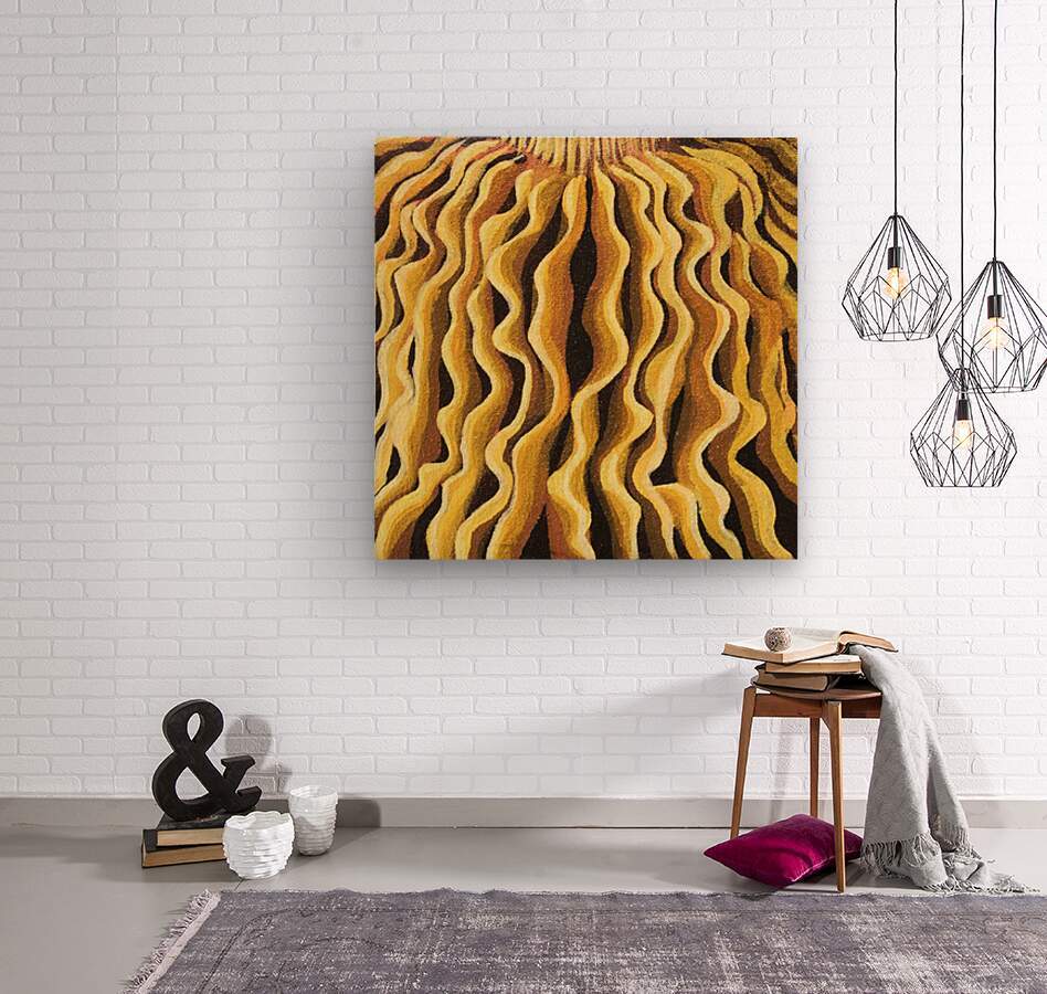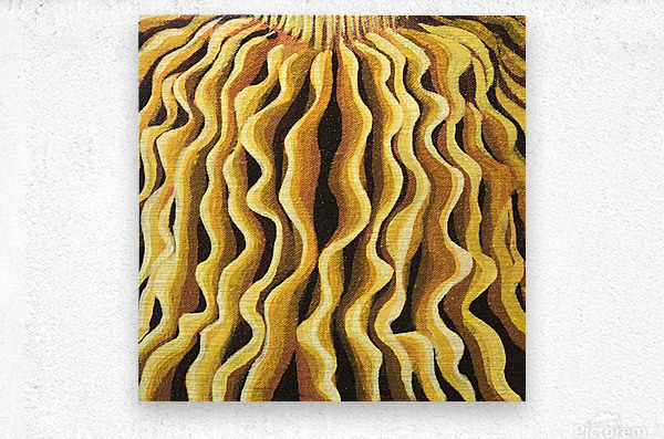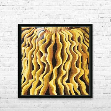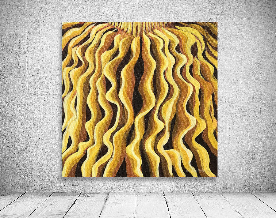 this painting features wavy mushroom gills in a line pattern, mesmerizing and bold