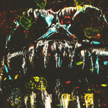 Creative artwork catharsis on a malicious horror skull visualised in graphic disaster. Pop art madness