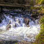 The Little River, near the Sugarland Visitor Center is a great section of class III-IV whitewater that can come in with just a little bit of rain. "The Sinks" in the Great Smoky Mountain National Park, is known as being the most scenic part of the Little River, part of the Nantahala National Forest. The first three rapids are called the Screaming Meanies, and are between IV-IV+ rapids. The Elbow at the end of the run is also a Class IV rapid at these flows. Loggers in the day used this river to transport logs down the river. At one point the logs got stuck here and were blasted creating "The Sinks" a whole new route of access, now a spot of crystal clear water, natural pools, and a waterfall. There have been at least 60 deaths recorded since the 1930s here because of undertows and dangerous rapids and currents around the bridge.