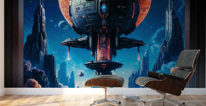 The Landing Retro Fusion Sci-Fi Space Poster Art Captivating AI Concept Art by Xzendor7  Wood print
