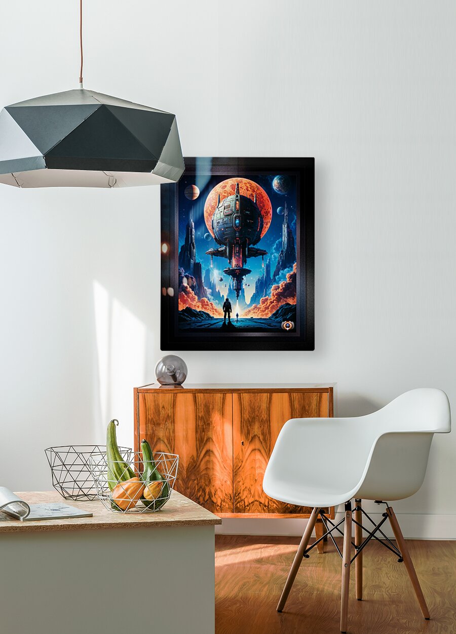 Get this artwork "The Landing Retro Fusion Sci-Fi Space Poster Art Captivating AI Concept Art by Xzendor7" in a framed print.
