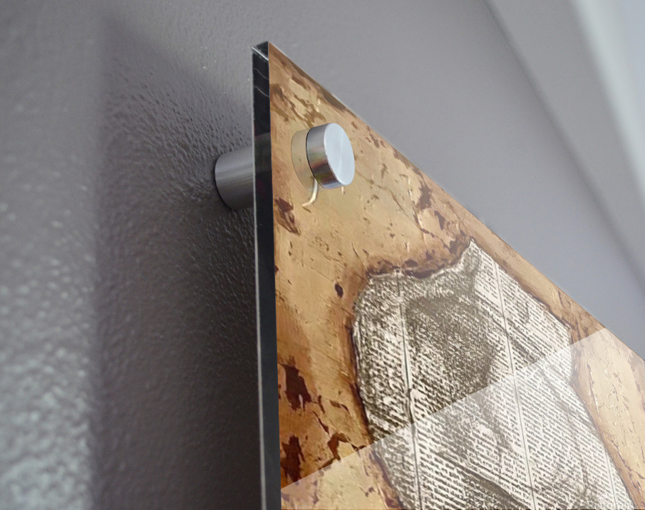 Printed to the edge - Ready to hang - provided with 4 premium polished aluminum stand off ( wall screws and mounting hardware provided )