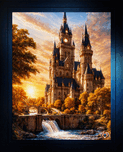 Get this artwork "Fantasy Castle With Bridges Over A River by Sunset Astonishing AI Concept Art Portrait by Xzendor7" in a framed print.