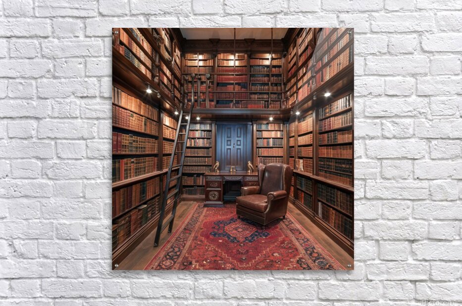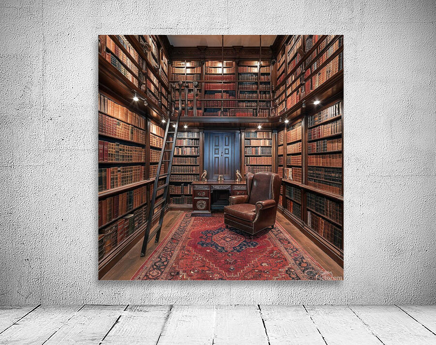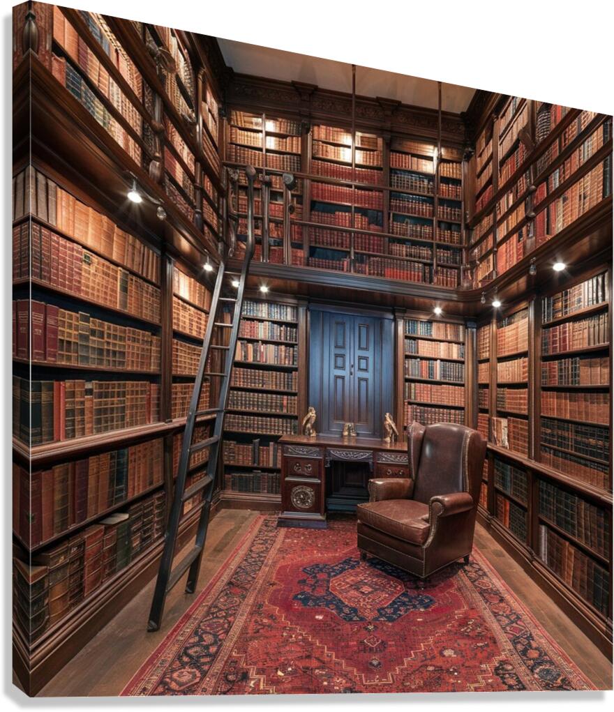 TRADITIONAL LIBRARY WITH FLOOR-TO-CEILING BOOKCASES DIGITAL ART  Canvas Print