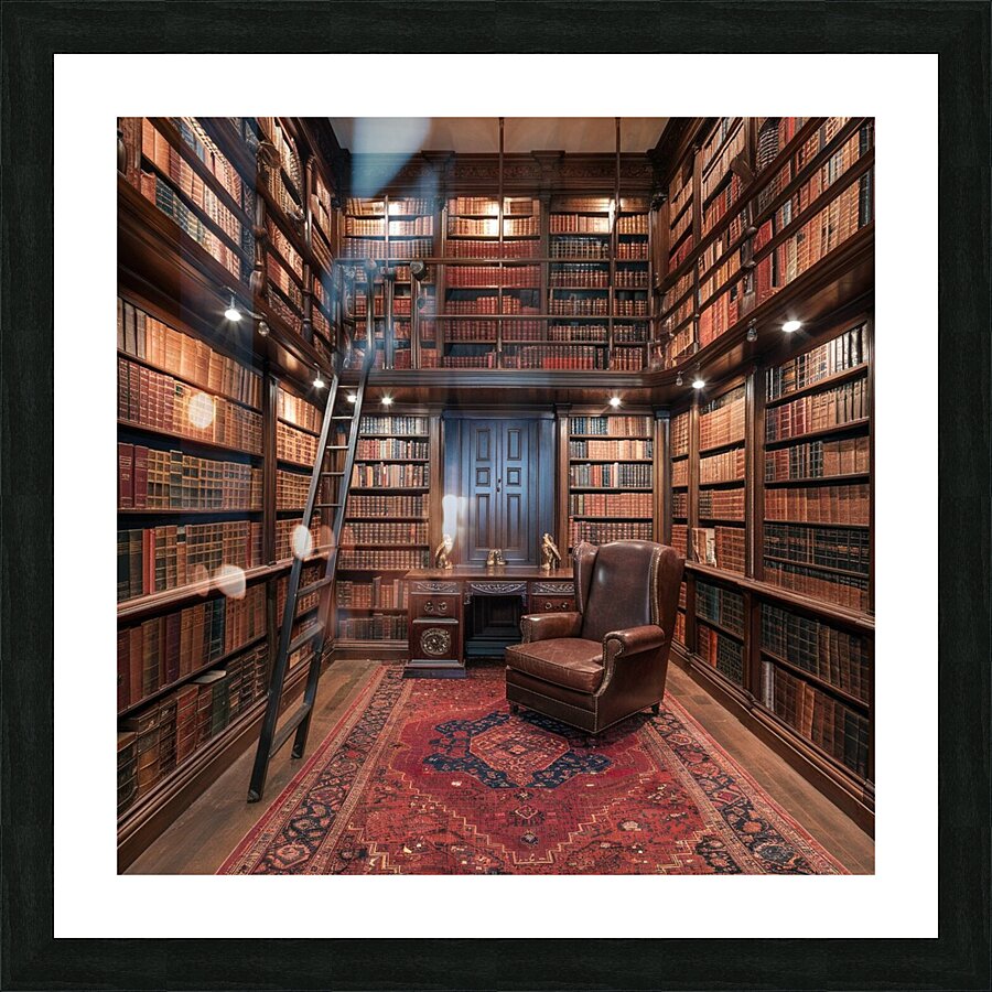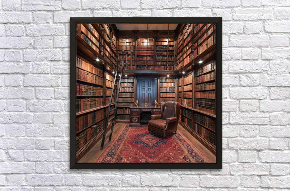 Traditional library with floor-to-ceiling bookcases Picture Frame Printing