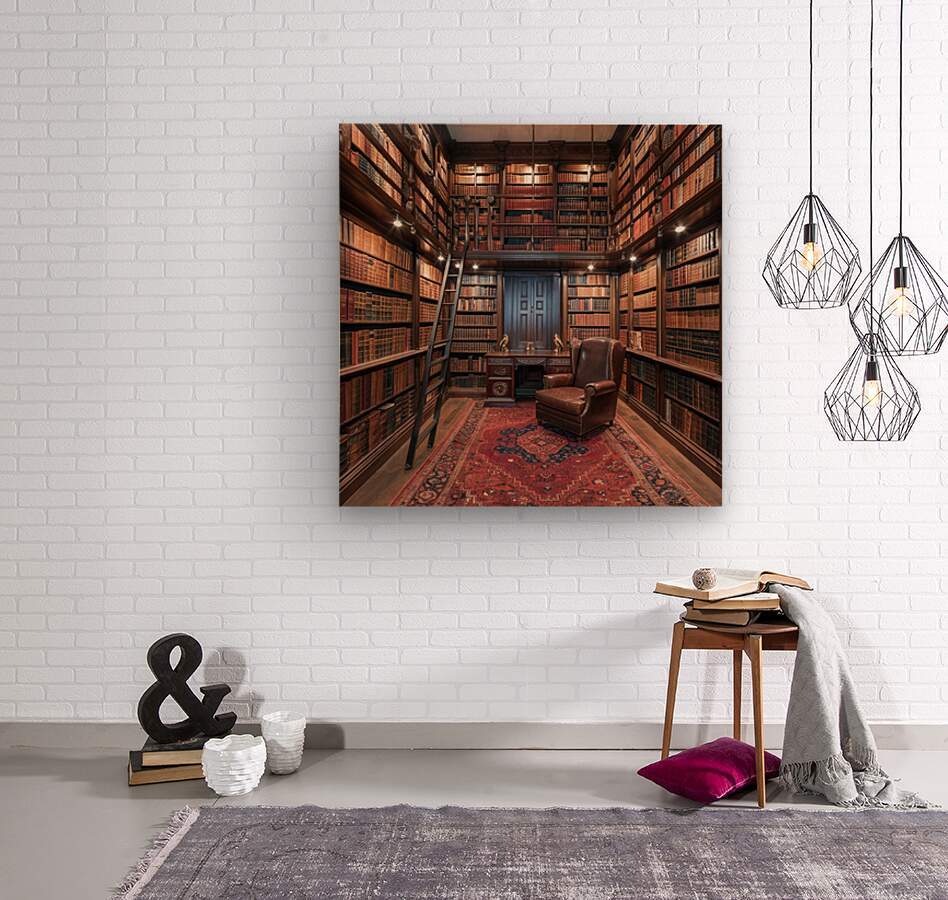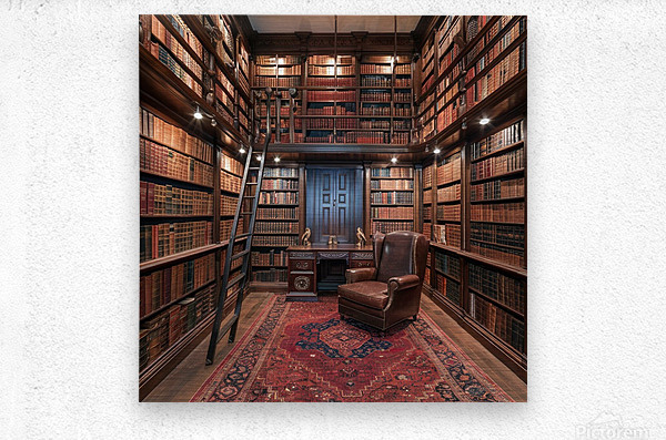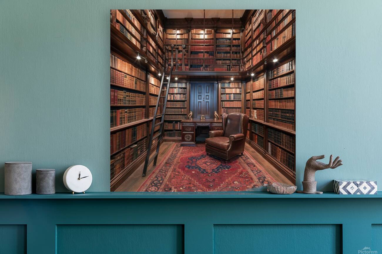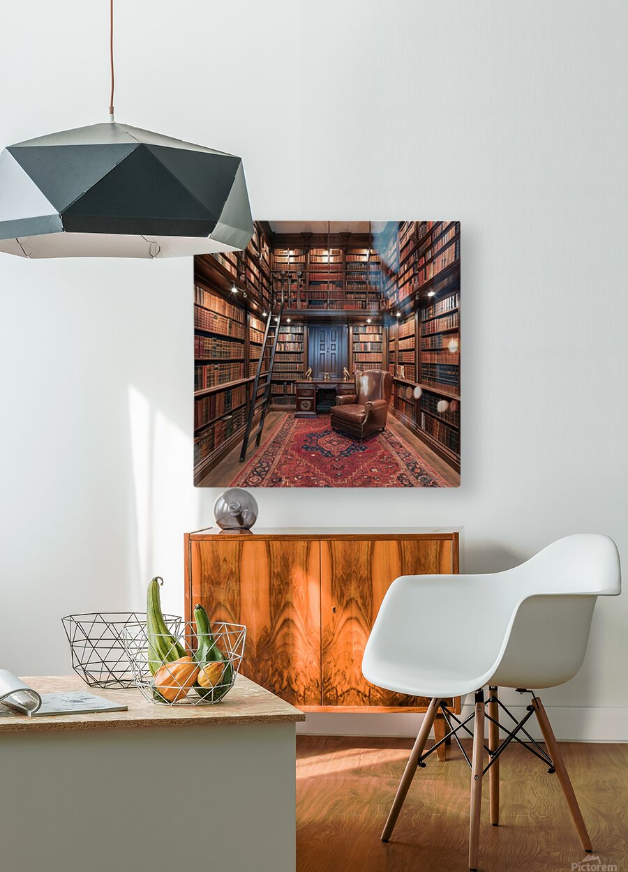 Traditional library with floor-to-ceiling bookcases HD Sublimation Metal print