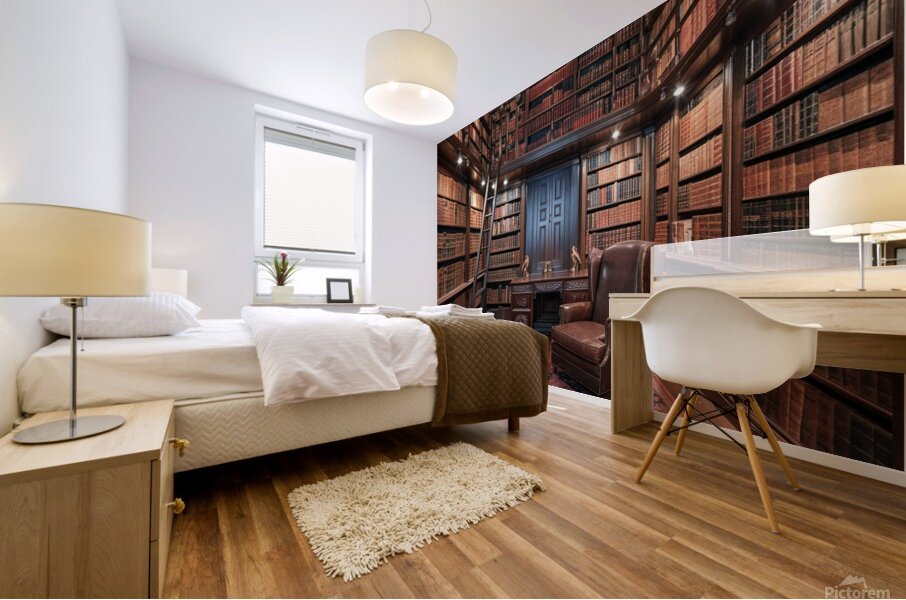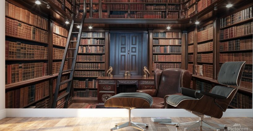 Traditional library with floor-to-ceiling bookcases  Wood print