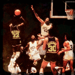 1980 Orlando Woolridge Notre Dame Basketball Art | College Basketball Viewfinder Slide Art | Row One Brand | Over 14,000 Historic Sports Art Prints | Remixed for the aesthetics of an old school viewfinder slide, this Row One Brand college basketball art shows superstar Orlando Woolridge shooting a jump shot against UCLA. Derivative art © 2024 Row One Brand