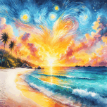 The wall painting depicts a mesmerizing starry sky, capturing the enchanting beauty of the cosmos in vivid detail. Swirls of celestial hues dance across the canvas, evoking a sense of wonder and awe. Each twinkling star seems to tell a story of distant galaxies and cosmic mysteries, inviting viewers to lose themselves in the vastness of the universe.