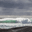 The late afternoon sun backlights a crashing wave as the Peggy's Cove lighthouse stands tall in the background.