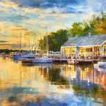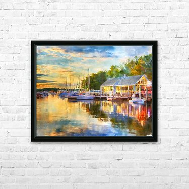 Life is lovely along the Vermilion River in Ohio. This scene depicts my memories of the sun coming down and its fantastic colors reflecting onto the river waters, boats, and dockside restaurant. Bring this colorful watercolor, a peaceful and idyllic scene, into your home or office. Just select your preferred size and choice of media.