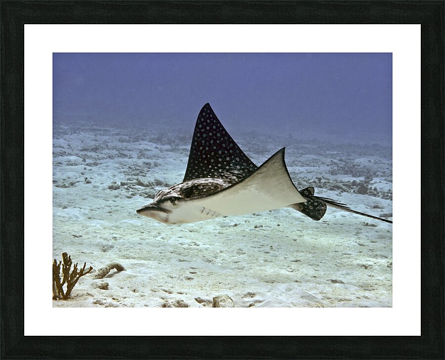 A spotted eagle ray glides along the bottom. Produced specifically by DeepEarth Photography for use in the hospitality industry. No warranties are sta...[+]