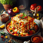 A PLATE OF LASAGNA ON A TABLE WITH EXQUISITE DECO 1714414426.2011