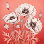 This elegant design features a single white poppy against a bold red background. The white poppy is a symbol of peace, while the red background can represent remembrance. This image would be perfect for a variety of uses, including cards, prints, and websites.