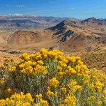 On a clear day you can see forever. That's what I thought when I saw this mountain desert rocky view. Close to Lake Tahoe is this dry, gorgeous, mountain, desert vista, covered with yellow flowers that look like straw flowers. They add contrast and texture to a landscape void of trees or much greenery.