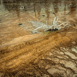 Caught in the hot waters of a Yellowstone National Park spring pool, this old dead tree gradually is bleached in the acidic water before it falls apar...[+]