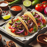 DELICIOUS TACOS ON A PLATE PLACED ON WOODEN TABLE 1714682769.5112