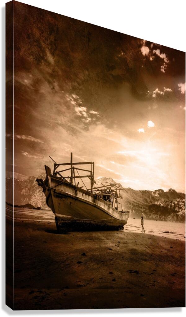 OLD SHIP ON THE SEASIDE AND WOMAN EHTIRAM MAMMADOV  Canvas Print