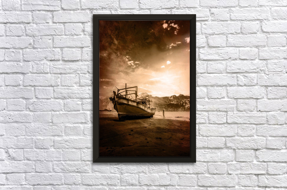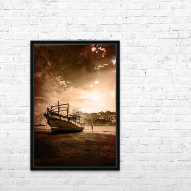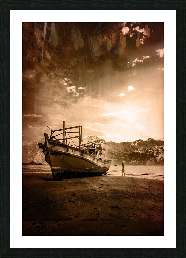 Get this artwork "Old Ship on the seaside and woman" in a framed print.