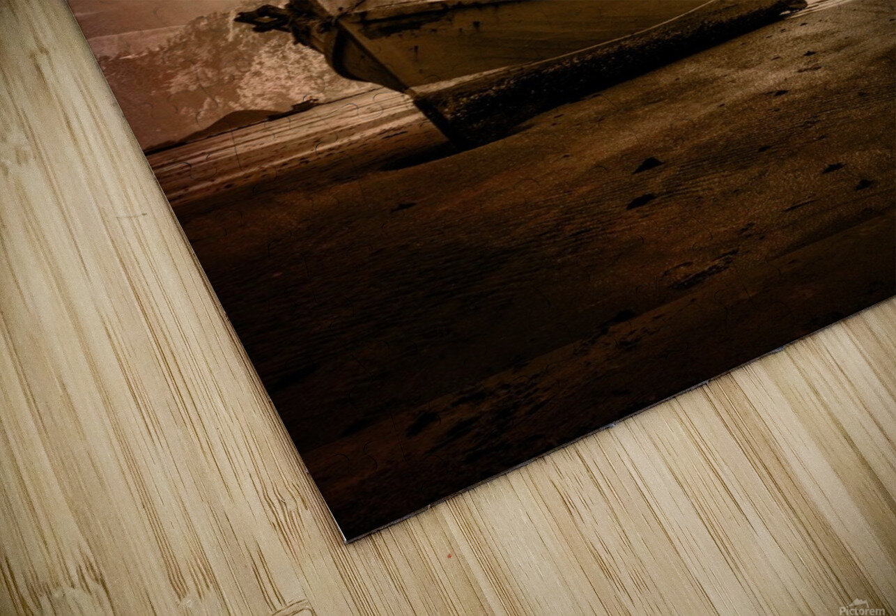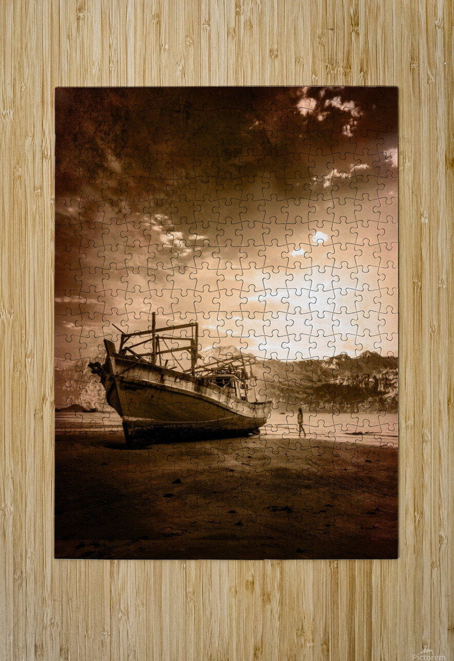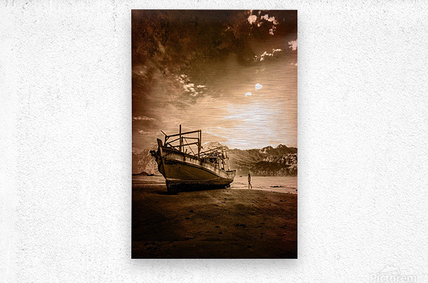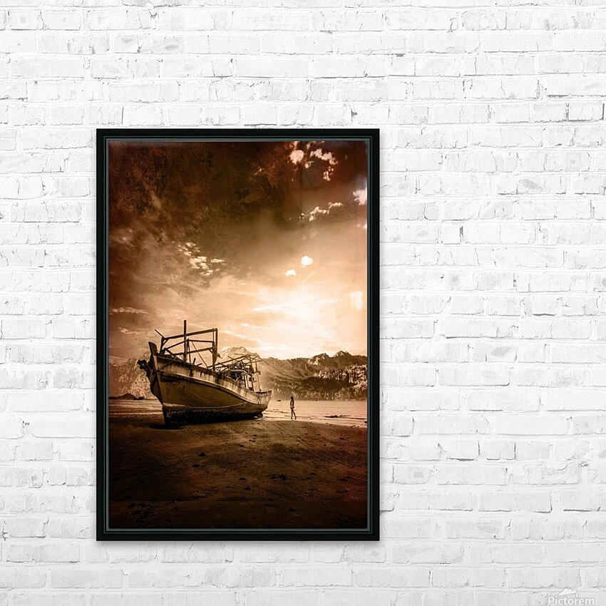 Old Ship on the seaside and woman  HD Metal print with Floating Frame on Back