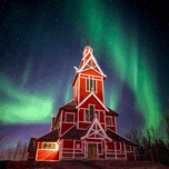 NORTHERN LIGHTS OVER BUKNES CHURCH