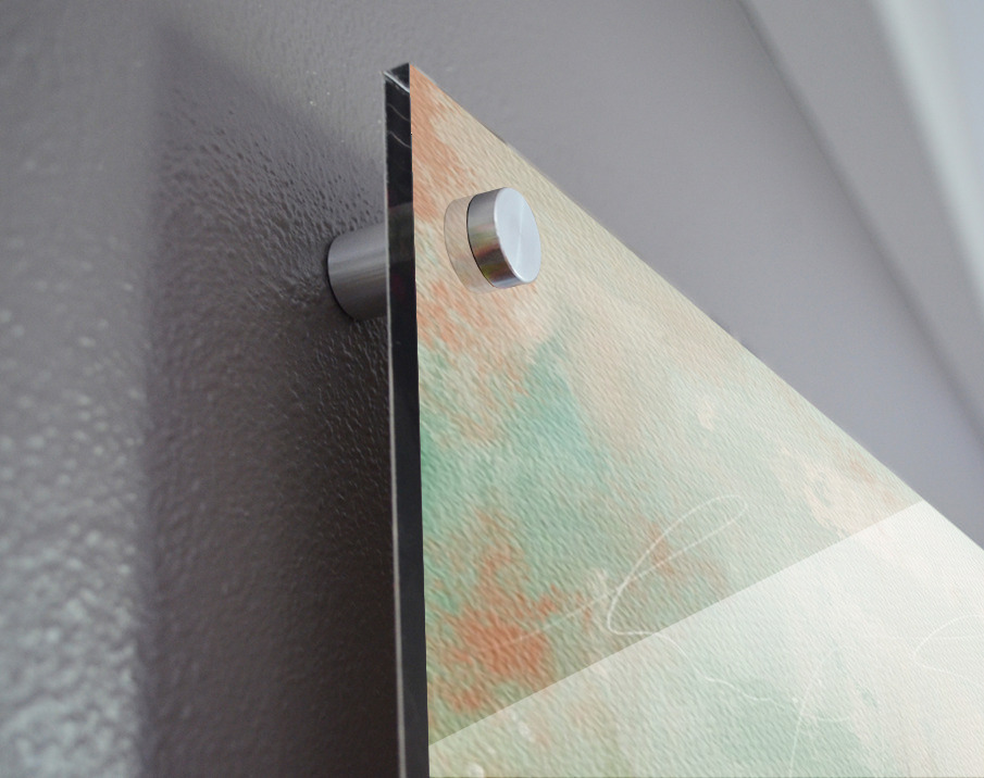 Printed to the edge - Ready to hang - provided with 4 premium polished aluminum stand off ( wall screws and mounting hardware provided )