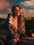 ABOUT THIS ARTWORK: A CAPTIVATING PHOTOGRAPH OF A YOUNG WOMAN AND CAT